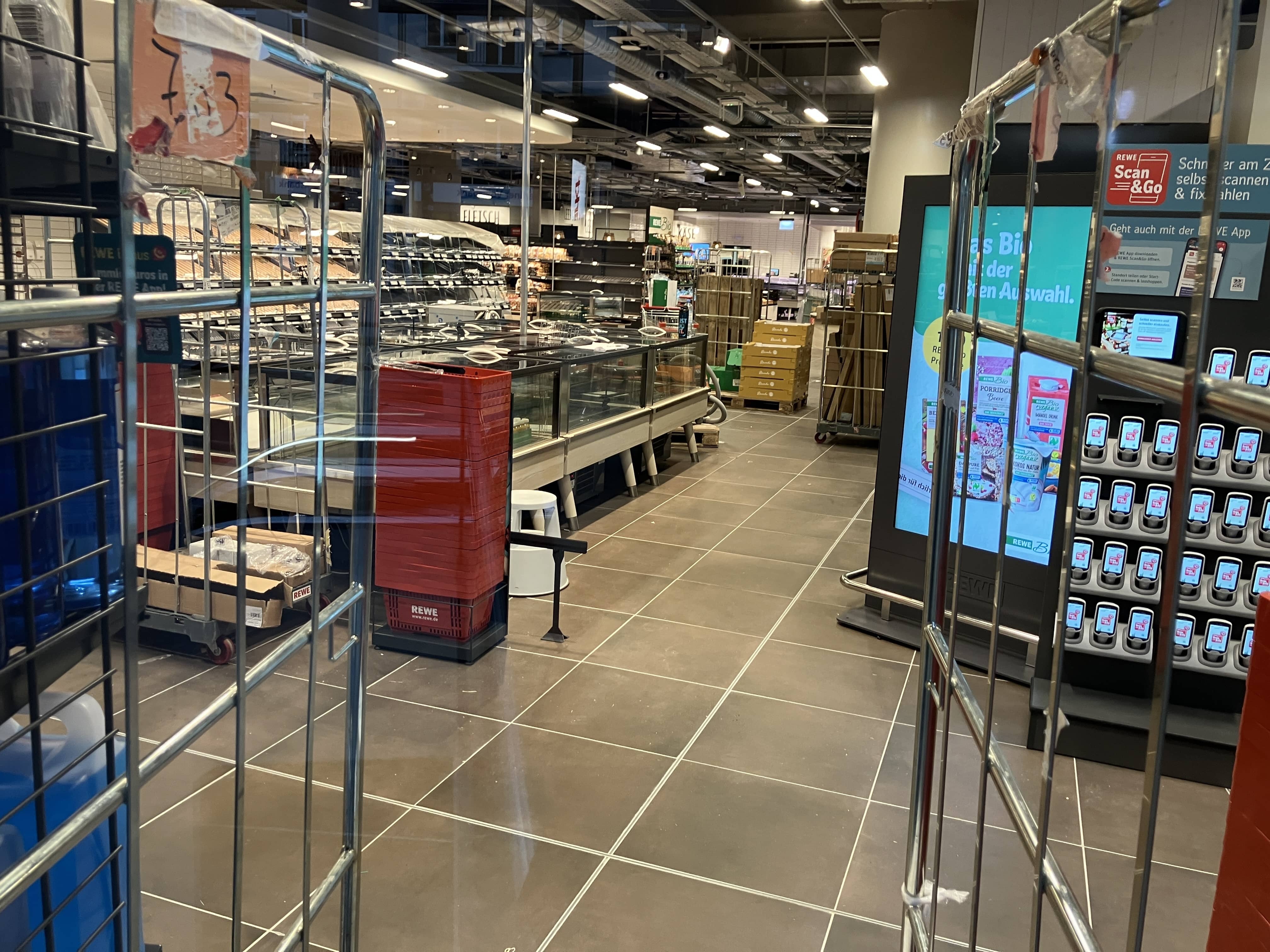Natürlich haben es alle bereits bemerkt: seit einem Jahr wurde gebaut und an den Schaufenstern im Erdgeschoss der ehemaligen P&C-Filiale klebten großflächige Hinweise, dass am 16. Oktober 2025 Jirko Lehmberg hier einen neuen Markt der Supermarktkette Rewe eröffnen wird. Mittlerweile ist das geschehen.